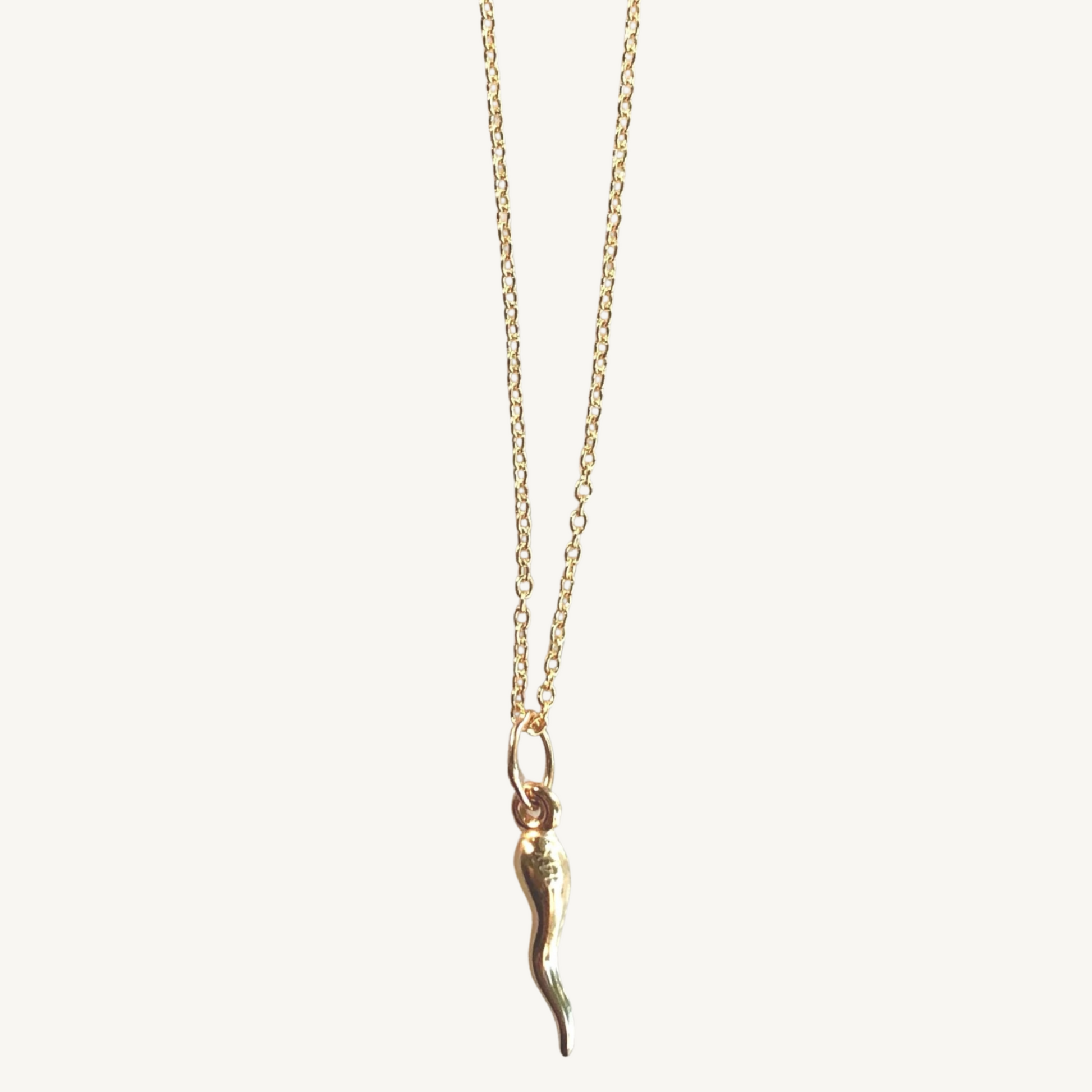 Sterling Silver or Gold Filled can be worn at 16 or 18 inches. Italian horn is known for bringing good luck to the wearer.
