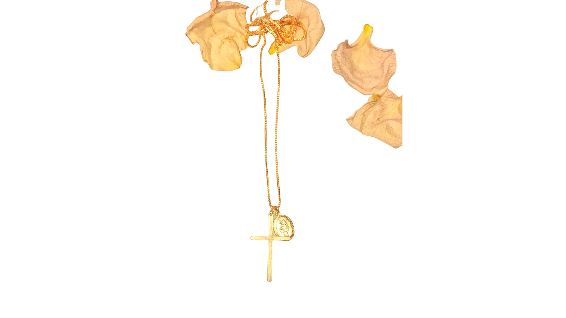 Gold filled cross and miraculous medal necklace 18” length.